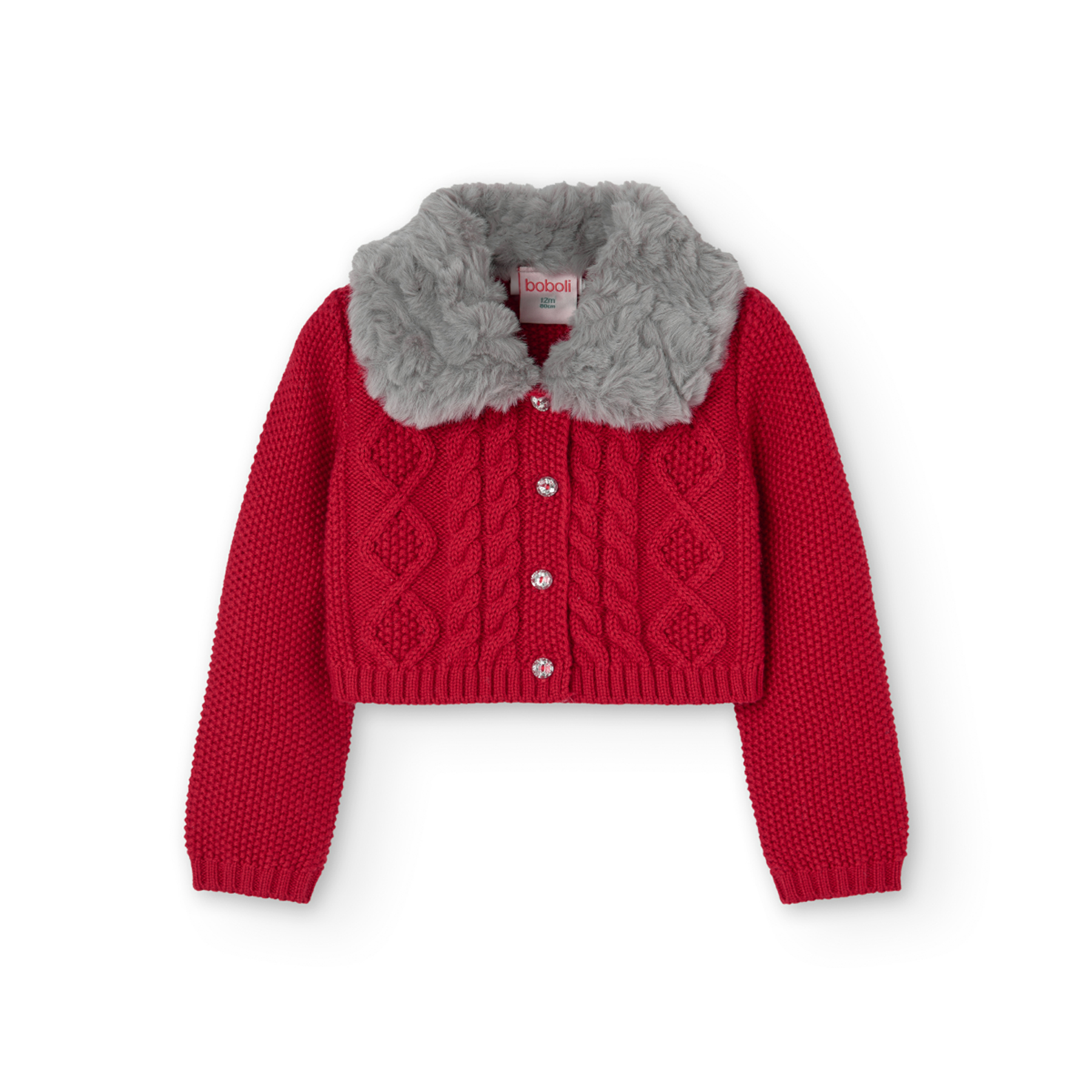 Chaqueta de punto , con botones de cristal y pelo en el cuello .