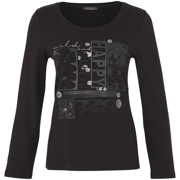 Camiseta Dolcezza ,diseño exclusivo ,elegante ,con brillantes rojos en parte del cuello.