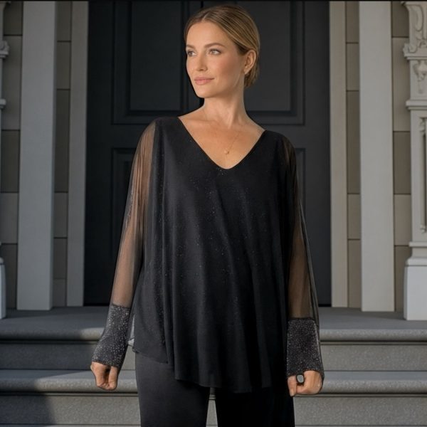 Blusón con brillo Forrado, mangas con gasa y puño. forrado con mangas en gasa.