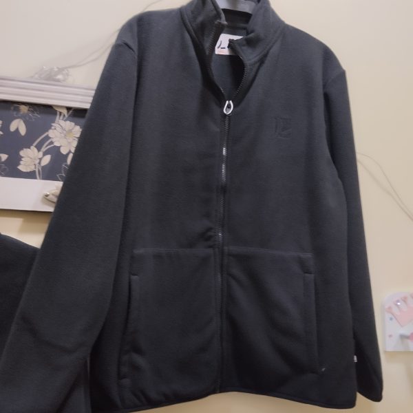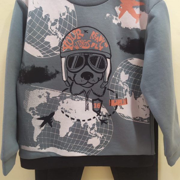 Conjunto polar con capucha y estampado (perrito) en la parte delantera y en el pantalón .