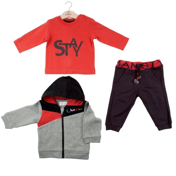 Conjunto pinocho de tres piezas para bebe, compuesto de chaqueta de punto blusa y pantalón con tirantes .