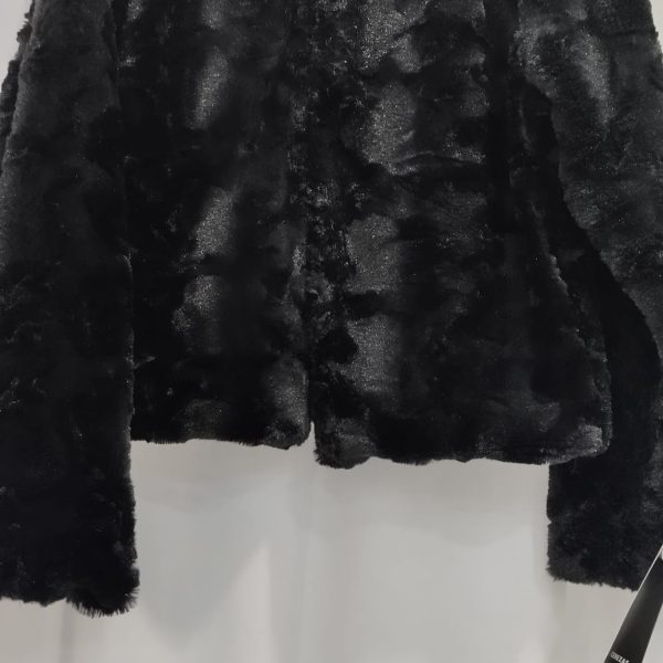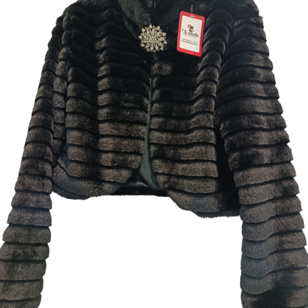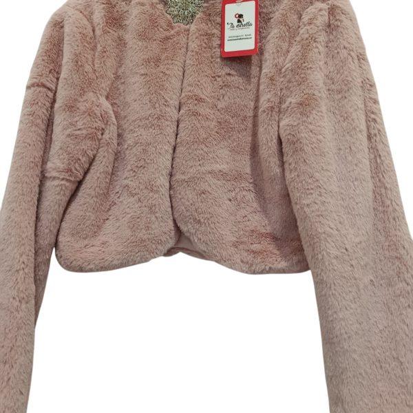 Chaqueta de punto , con botones de cristal y pelo en el cuello .