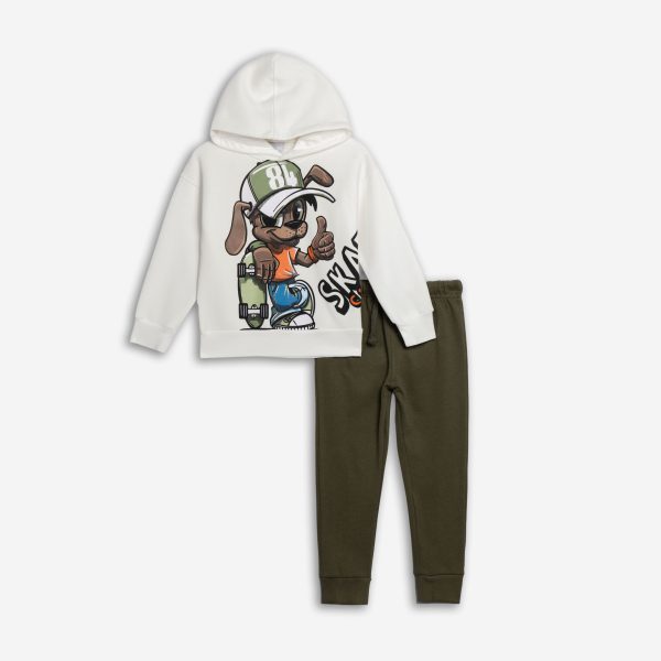 CONJUNTO SUDADERA CON CAPUCHA CREMA-CAQUI