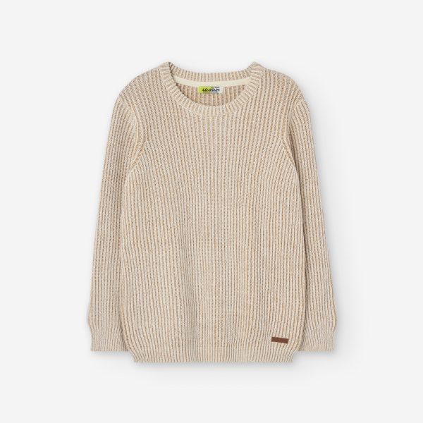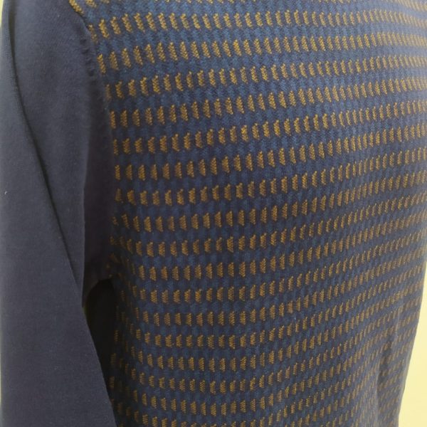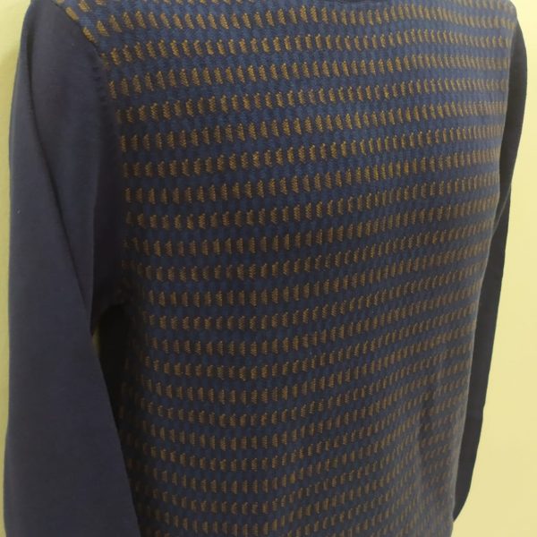 Jersey de punto, con diseño frontal de espinas en marrón y azul.