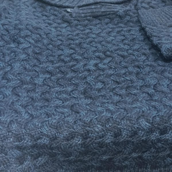 Jersey lana, escote en  pico con adorno botón y cuello vuelto. Muy abrigo y cómodo.