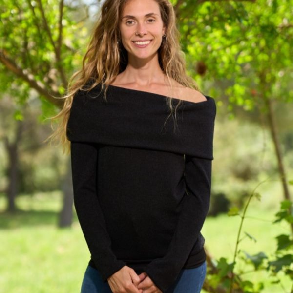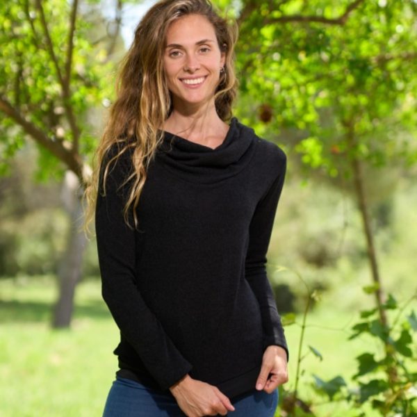 Jersey cálido con cuello caído en negro Fabricación española y artesanal.