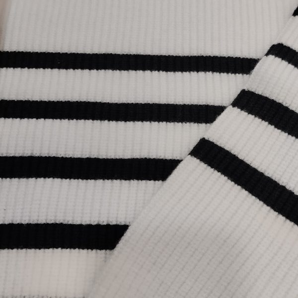 Jersey punto manga larga ,en blanco con franjas negras. Composición 50% viscosa 30% poliéster 20% poliamida.