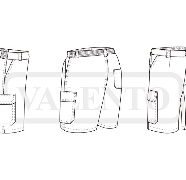 Bermuda de trabajo multibolsillos. Confeccionada en tejido sarga mezcla algodón con poliéster resistente y duradero. Cintura con la mitad trasera elástica